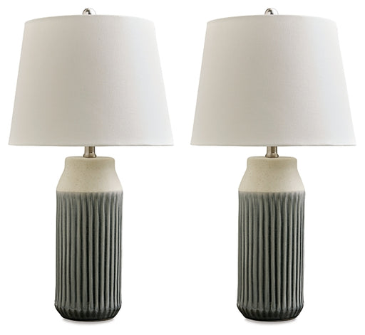 Effortlessly elevate your home's decor with the chic refinement of this table lamp. Its elegant blue and goldtone hues add quiet luxury to your liv...