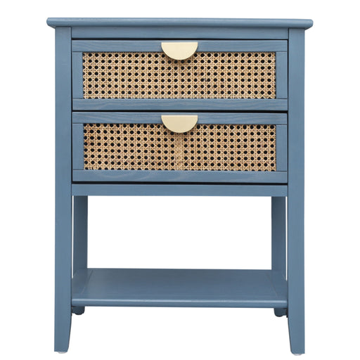 Sturdy and Stylish Design: Made of MDF with rattan door panels and solid wood legs, this end table is durable and fashionable. Convenient Storag...
