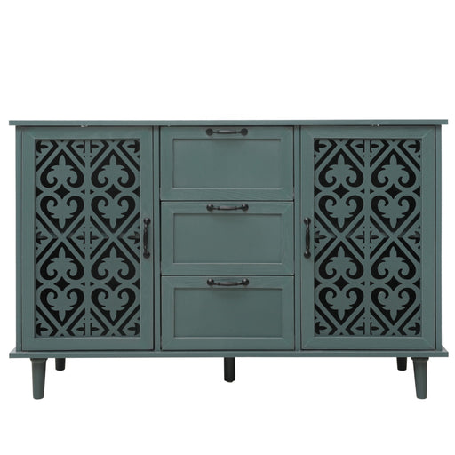 Elegant Design: Cabinet door panels are beautifully carved with a symmetrical pattern, enhancing the aesthetic appeal while ensuring good air perm...