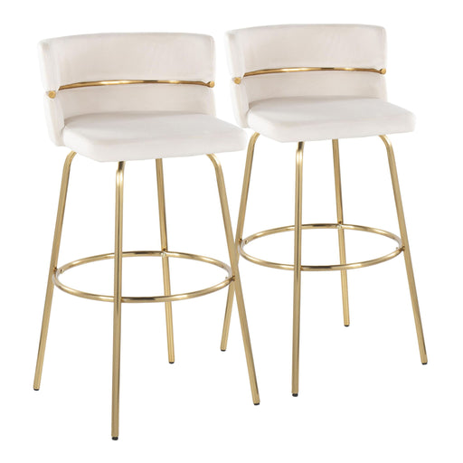 Stylish Design: The Charlotte Glam Fixed-Height Barstool by LumiSource features a chic, rounded backrest and a padded upholstered seat, providing...