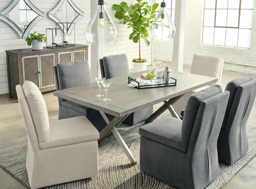 The use of mixed materials on this urban-inspired dining table makes it a true statement piece. Featuring a wood tabletop combined with a sturdy wo...