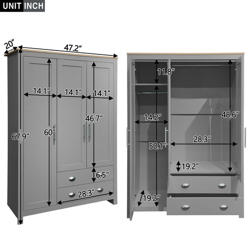 Maximizes Bedroom Storage: Offers three doors with a hanging rod, two large drawers, and four adjustable shelf compartments for organized clothing...