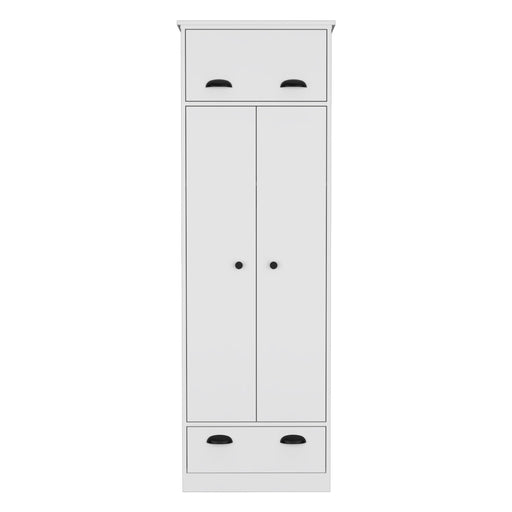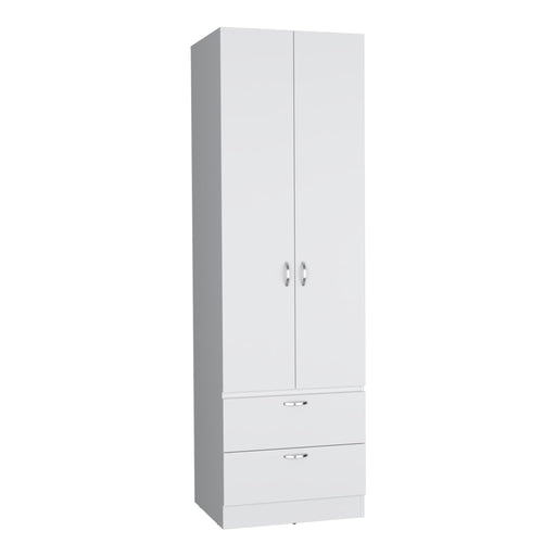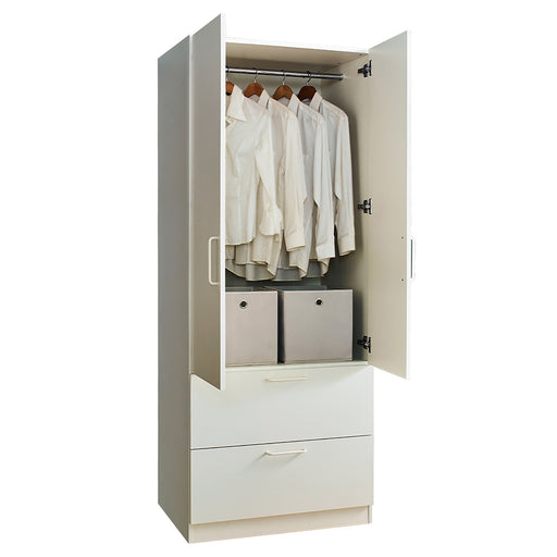 Ample Storage Space: Offers multiple compartments including two hanging rods, one top shelf, and two drawers for efficient organization of clothes...