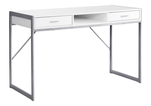 Modern Design: Upgrade your home office with a sleek, modern computer desk featuring a white laminate top and a contemporary grey metal base ...