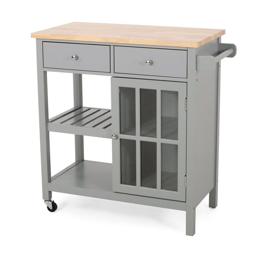 Design and Features: This kitchen cart features a rectangular design with glass doors and two drawers equipped with side metal glide. It includes...