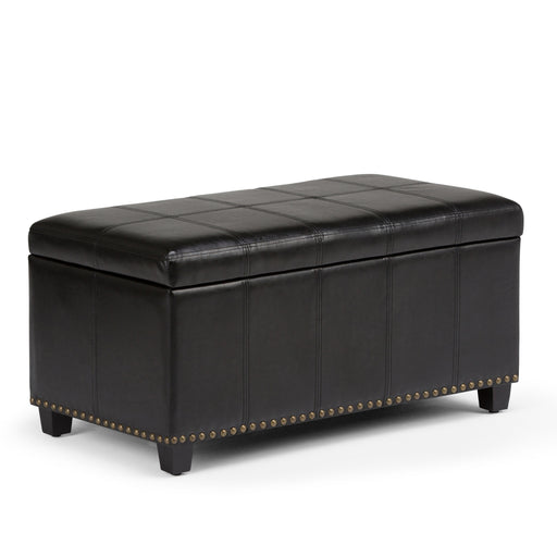 Upholstered with Tanners Brown Vegan Faux Leather Constructed using solid wood, plywood, foam Features easy lift up and out top with child safety ...