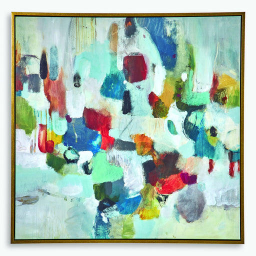 The Abstract Reflections Framed Canvas Features Abstract Shades Of Green And Blue With Highlights Of Fuchsia. A Solid Wood Gallery Frame With Gold ...