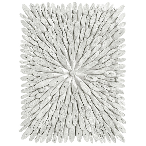This Wood Wall Panel Is Handcrafted From Individually Cut Natural Driftwood Pieces In A White Washed Finish, Artfully Arranged In A Striking Sunbur...