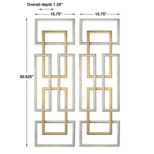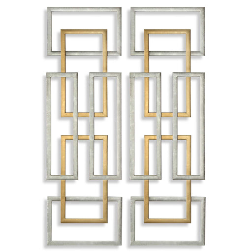 Overlapping, Geometric Rectangles Creating A Contemporary Look In A Two-toned Finish Combination Of Lightly Antiqued Gold And Silver Leaf. May Be H...