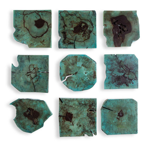 This Set Of Nine Wood Wall Pieces Is Crafted From 100% Natural Tamarind Wood In A Blue Green Finish. Because Each Is Individually Handcrafted, Natu...
