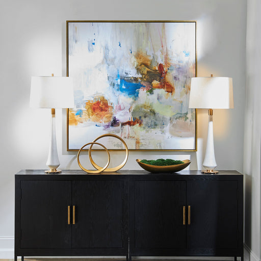 Soft gradients and fluid movement flow across Illuminate Painting, evoking a sense of light and tranquility. Framed in a black shadow design, this ...