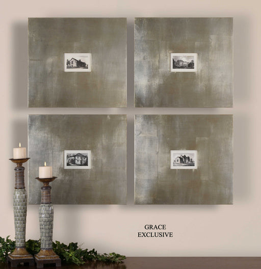 Hand Painted On Canvas These Abstract Pieces Showcase A Metallic Silver, Gold Leaf, And Ivory Color Palette. Silver Leaf Gallery Frames Complete Th...