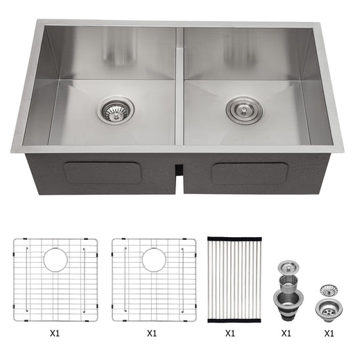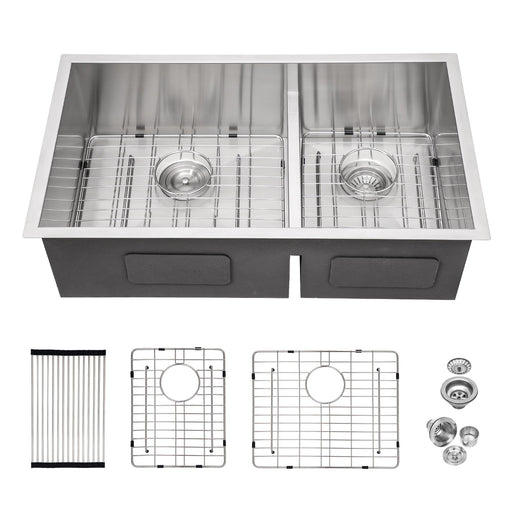 Double Bowl: Features a 50/50 double bowl design for efficient multipurpose use. Drain Easily, Sound Proof: X-shaped water guide ensures smooth dr...