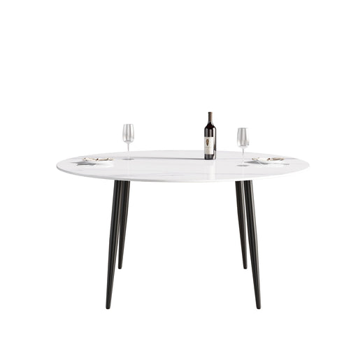 Modern Man-Made Stone Round Metal Dining Table-Position For 6 People
