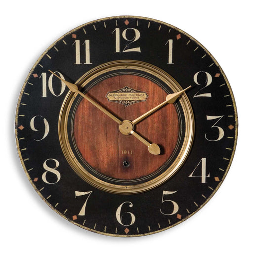 Weathered Laminated Clock Face With Cast Brass Details. Quartz Movement Ensures Accurate Timekeeping. Requires One "AA" Battery. Alexandre Martinot...