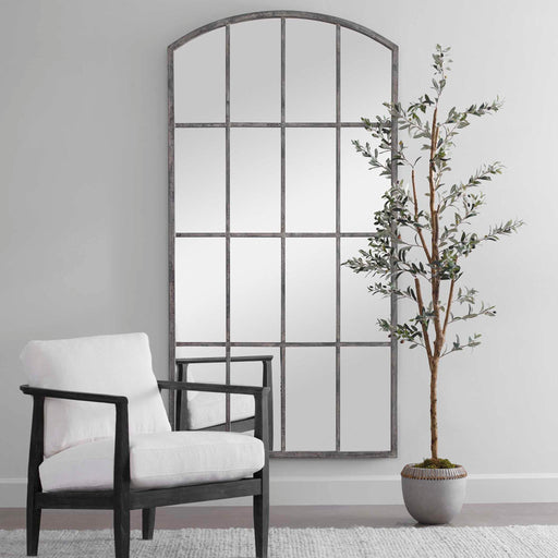 Contemporary And French Country Styles Merge In This Arched Mirror. Reminiscent Of A Large Window, This Piece Features A Hand Forged Iron Construct...