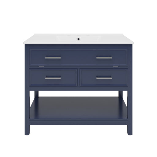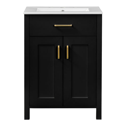 Space-Saving Design: 24-inch width fits small or guest bathrooms while delivering full functionality and ample storage. Durable Ceramic Sink: Scra...