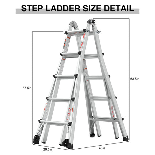 Versatile and adaptable: The multi-position ladder effortlessly transforms into various configurations, including A-frame, extension, trestle-and-...
