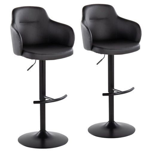 Modern Design: The Ahoy Adjustable Bar Stool by LumiSource boasts a contemporary design, combining sleek faux leather upholstery with a sturdy co...