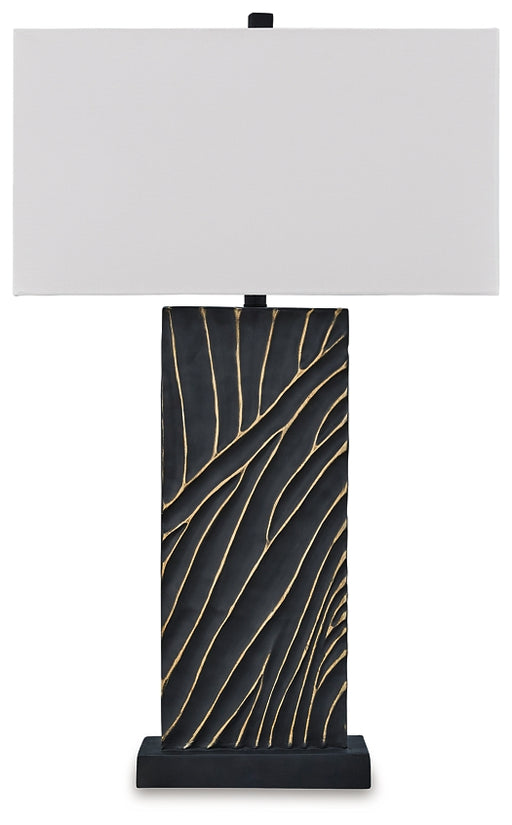 Kick your style up a notch with this table lamp. The impressive black base boasts textured detail enhanced with striking gold accents for sophistic...