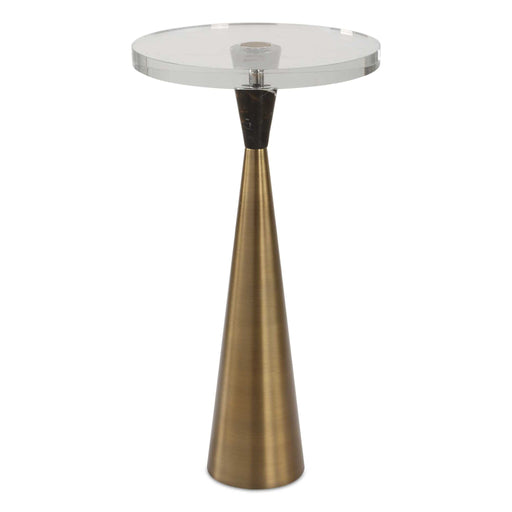 Sleek And Contemporary, This Accent Table Showcases A Crystal Top Paired With A Tapered Metal Base In Brushed Brass, Beautifully Accented By Dark M...