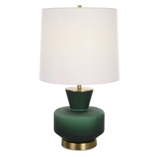 Inspired By Mid-Century Modern Design, This Table Lamp Features A Unique Dark Emerald Green Glass Base That's Accented With Lightly Antiqued Brass ...