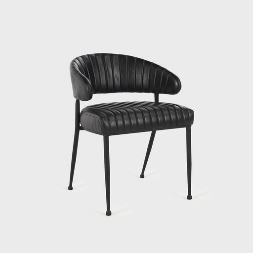 The Umbria Dining Chair features rich top-grain leather with sleek vertical channeling, paired with sturdy iron legs. Its tasteful design exudes un...