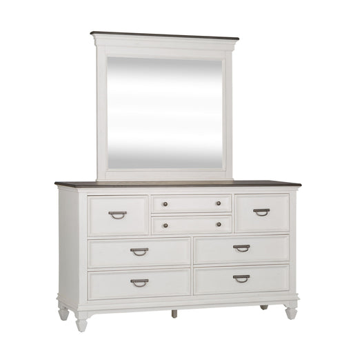 Design possibilities are endless with the Allyson Park dresser and mirror. Crafted of pine solids with cathedral oak tops, this piece features a wi...