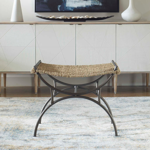 Our Playa Small Bench Showcases A Handwoven Seat Made Of Natural Seagrass Supported By An Elegant Curved Metal Base Finished In Brushed Gunmetal.Pr...