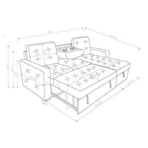 Convertible Sofa Bed: Transforms easily into a sofa bed, providing comfort and convenience for guests. Reversible Chaise Lounge: Fully reversible ...