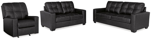 If you love the cool look of leather but long for the warm feel of fabric, you can take comfort in this 3-piece set with sofa, loveseat and recline...