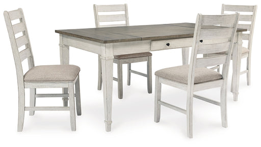 Whether your style is farmhouse fresh or country cottage, this dining package is something to savor. Serving up comfort and flair, a two-tone textu...