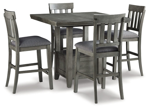 Cool and on-trend. This counter-height dining package sports an antiqued gray finish and gray textural fabric for a contemporary-yet-casual feel. T...