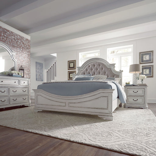 Opt for an elegant display. A refined yet relaxed feel describes the Magnolia Manor upholstered bed, dresser, and mirror. Crafted of poplar solids ...
