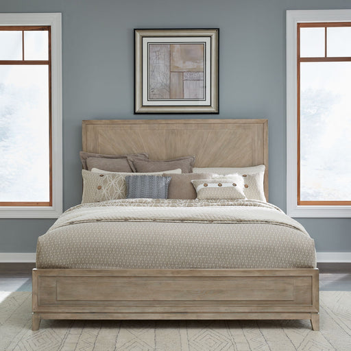 Make a statement with the Belmar panel bed. Crafted with rubberwood solids and split heart oak veneers, the washed taupe and silver champagne finis...