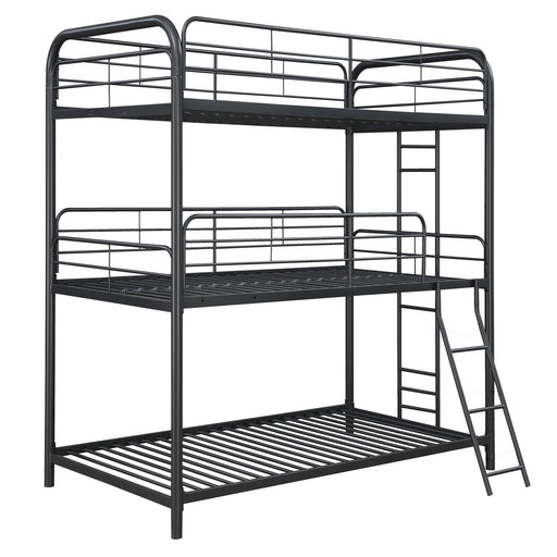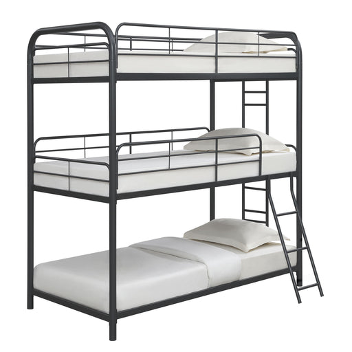 Space-saving Triple Bunk Bed: Modern style and comfort for any bedroom, not convertible but can be stacked to save space. Sturdy Steel Construct...