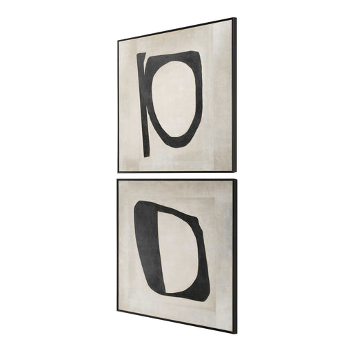 This Set Of Two Hand Painted Canvases Embody A More Mature Approach To A Monochromatic Palette. It Showcases A Background With A Mix Of Cream And W...