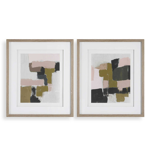 This Set Of Framed Prints Showcases Abstract Compositions In Cool Olive, Mauve, Rose, And Gray Tones. Each Piece Of Art Is Placed Under Glass And S...