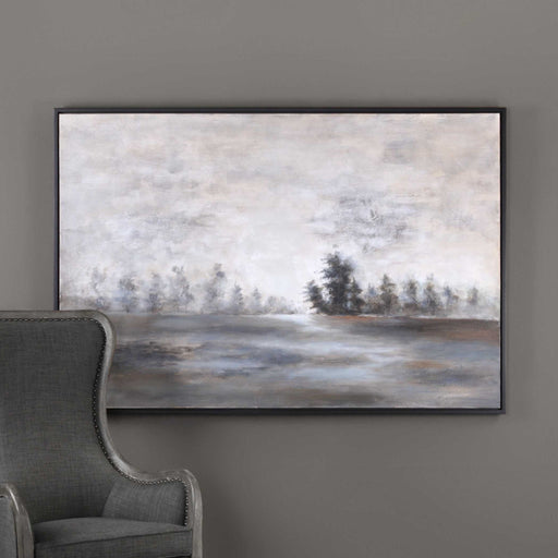 Moody Shades Of Gray, Green, And Charcoal Comprise This Masculine, Hand Painted Landscape. A Peaceful Quality Emanates From This Piece On Canvas, W...