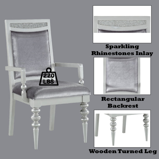 Sophisticated Design: This arm chair features a high rectangular backrest with a wooden frame adorned with sparkling rhinestone inlays, adding el...