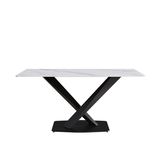 Elegant Design: This rectangular dining table features a sleek white artificial stone top, perfect for modern decor. Durable Surface: The 12mm sin...