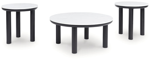 Clean lines meet cool curves with this accent table set. Simple dowel legs and a black finish lend a modern vibe, while replicated white marble top...