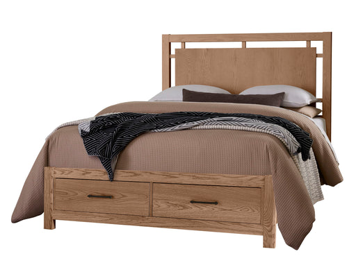 An inverted arch headboard with a storage footboard with two drawers. Bed posts and both slats in varying sizes adds visual interest to the Slat Po...