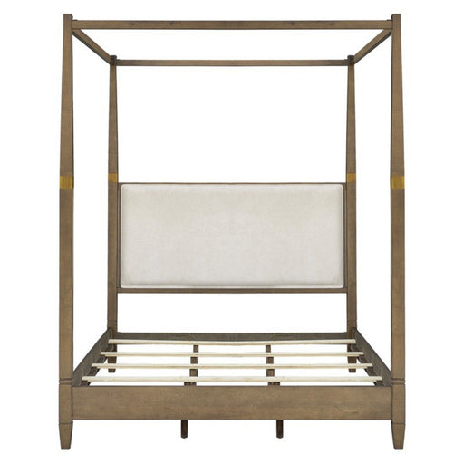 Material: Solid wood frame with a rich brown finish for durability and style Design: Four decorative gold metal cuffs on vertical posts for an ele...