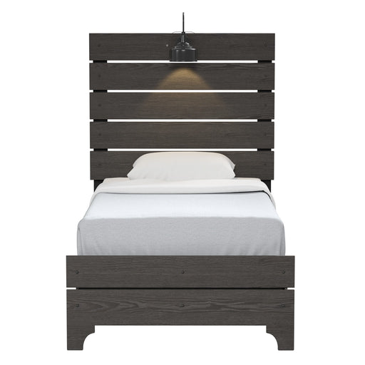 Add a natural feeling to your living space using the Thornwood Hills bookcase bed. The rock beaten gray finish is highlighted by saw cuts and hamme...