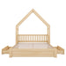 Queen Size House Platform Bed With Guardrail And 2 Drawers - Natural