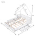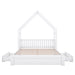 House Style Queen Size Platform Bed With Guardrail And 2 Drawers - White