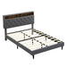 Modern Queen Size Upholstered Platform Bed Frame With Button Tufted Linen Headboard And USB Ports - Dark Gray