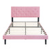Modern Upholstered Queen Size Platform Bed Frame With Button Tufted Linen Headboard - Pink