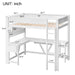Full Size Gaming Loft Bed With Desk, Storage Shelves, LED And Charging Station - White
